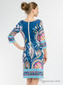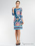 Стильное платье с ярким рисунком. Модель будет удачно гармонировать с любыми предметами гардероба. Оригинальный покрой с округлым вырезом и рукавами 3/4. Дополнено изделие молнией на спине контрастного цвета. Идеальный вариант на каждый день.