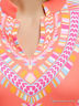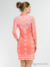 Очаровательное короткое платье полуприталенного силуэта - идеальный выбор для создания стильного летнего образа. Модель с фигурным вырезом горловины и рукавами длиной 3/4. Изделие декорировано эффектным абстрактным рисунком.