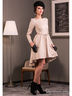 Платье с длинными рукавами и округлым вырезом горловины. Модель удлиненного кроя сзади. Отличный вариант для создания стильного ретро-образа.