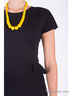 Элегантное платье лаконичного кроя. Изделие с короткими рукавами и округлым вырезом горловины выполнено из красивого полотна. Сзади модель дополнена рюшами и застежкой на молнию. Эта вещь станет прекрасной составляющей Вашего гардероба. Бусы и серьги в комплекте.
