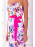 Привлекательное платье-бандо облегающего силуэта выгодно подчеркнет достоинства Вашей фигуры. Декорировано изделие яркой расцветкой и поясом контрастного цвета. Застежка на молнию на спине. Прекрасный вариант для коктейльных вечеринок.