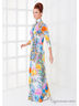 Очаровательное платье с завышенной линией тали длинной "в пол". Изделие с длинными рукавами и глубоким вырезом декольте. Отличный вариант для создания модного, вечернего образа. Модель дополнена шарфом в тон платью.
