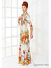 Очаровательное платье с завышенной линией тали длинной "в пол". Изделие с длинными рукавами и глубоким вырезом декольте. Отличный вариант для создания модного, вечернего образа. Модель дополнена шарфом в тон платью.