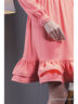 Очаровательное платье с длинными рукавами и воротником-стойкой. Модель выполнена из высококачественного материала однотонной расцветки. Низ платья декорирован воланами. Отличный вариант для создания стильного ретро-образа.