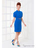 Великолепное платье с фигурным вырезом горловины и короткими рукавами. Модель дополнена короткой застежкой на пуговицы спереди и декоративным поясом. Прекрасный вариант для модных женщин, желающих подчеркнуть свою индивидуальность и хороший вкус.