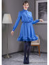 Очаровательное платье с длинными рукавами и воротником-стойкой. Модель выполнена из высококачественного материала однотонной расцветки. Низ платья декорирован воланами. Отличный вариант для создания стильного ретро-образа.