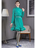 Очаровательное платье с длинными рукавами и воротником-стойкой. Модель выполнена из высококачественного материала однотонной расцветки. Низ платья декорирован воланами. Отличный вариант для создания стильного ретро-образа.