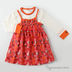 Красная кофта на пуговицах, украшенная вышивкой, рюшами и оборками. Брюки на высокой кокетке с кармашками, украшенные бантиками и декоративными пуговицами.