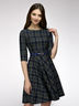 Платье темно-синее длины мини с принтом "шотландская клетка" с рукавами 3/4