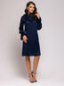 Платье темно-синее длины мини с воланами на рукавах и декоративной драпировкой на горловине