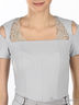 Детали: вырез каре, короткие рукава, застегивается сзади на молнию, талия подчеркнута поясом с кожаной кисточкой