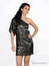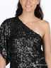 Короткое платье полностью вышитое пайетками. Один широкий рукав. Выполнено их двухслойного сетчатого материала.