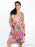 Воздушное плиссированное платье расклешенного покроя. V-образный вырез. Широкие бретельки. В комплект входит пояс в тон изделия. Легкая, полупрозрачная подкладка.