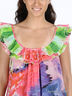 Легкое шелковистое платье свободного покроя. Широкая горловина с плиссированными оборками.
