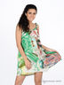 Летнее платье свободного покроя из легкого, шелковистого материала. Сверху изделия посажено на толстую косичку из аналогичного материала.