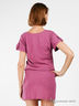 Детали: округлый вырез горловины, короткие цельнокроеные рукава с патами, заниженная линия талии на кулиске со шнурком, два накладных кармана на юбке.