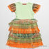 Детали: округлый вырез горловины, сетчатый рукав, разноцветные сетчатые оборки, по боковым швам пришиты ленточки завязывающиеся в бантик на спинке