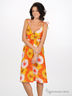 Отрезное платье расклешенного силуэта из льна. V-образный вырез. Завязки на плечах. Верх спинки посажен на резинку.
