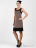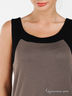 Детали: округлый вырез горловины, контрастные вставки, имитация передних карманов
