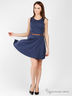 Детали: округлый вырез горловины, без рукавов, застежка на пуговицу, талия со шлевками подчеркнута ремнем