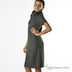 Трикотажное платье Bambolita из акрила с коротким рукавом. Платье выполнено контрастной вязкой. Верхняя часть - нежная ажурная вязка, нижняя часть выполнена гладью с мелкими горизонтальными полосками. Длина до колена. Большой ворот-шалька ажурной вязки. Платье свободной посадки, прямого покроя, слегка расклешенное к низу.