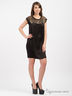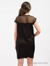 Платье с короткими рукавами и округлым вырезом горловины. Модель свободного покроя. На груди вставка из ткани контрастной фактуры и украшена декоративными элементами. Отличный вариант на любой случай.