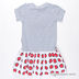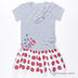 Детали: круглый вырез; короткий рукав; юбка с подкладкой; декорировано оригинальным принтом и вышивкой со стразами; на полочке оборки