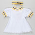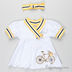 Детали: окантовка V-образного выреза и манжеты в виде трикотажной резинки контрастного цвета; оригинальная аппликация; в комплекте повязка для волос контрастного цвета с декоративным бантиком