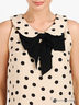 Детали: круглый вырез; застегивается на пуговицу сзади; отложной ворот; на полочке декоративный бант; принт - горох