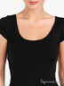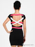 Детали: круглый вырез; короткий рукав; глубокий вырез на спине; спина декорирована контрастными оригинально переплетенными лентами