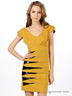 Детали: V-образный вырез, застежка в левом боковом шве на скрытую молнию, складки на лифе, контрастные вставки с пайетками