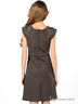 Детали: V-образный вырез с запахом, застежка на спинке на скрытую молнию, складки по линии отреза, плечики украшены декоративными элементами
