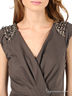 Детали: V-образный вырез с запахом, застежка на спинке на скрытую молнию, складки по линии отреза, плечики украшены декоративными элементами