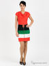 Детали: вырез качели; отрезной лиф; застегивается на скрытую молнию сбоку; пристроченный пояс-резинка с металлической пряжкой
