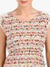 Детали: отрезной лиф; круглый вырез; пояс на резинке; декорировано оригинальным принтом и вязаным кружевом