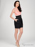 Детали: отрезной лиф декорирован принтом-полоска; оригинальный крой юбки; застегивается на молнию сзади