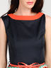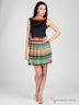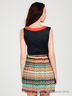 Детали: круглый вырез окантован контрастной тканью; застегивается на молнию сбоку; юбка декорирована оригинальным принтом; в шлевки продет тонкий ремешок