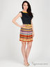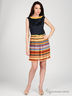 Детали: круглый вырез окантован контрастной тканью; застегивается на молнию сбоку; юбка декорирована оригинальным принтом; в шлевки продет тонкий ремешок
