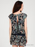 Детали: круглый вырез; втачной пояс-резинка; юбка в виде многорядных оборок; на спине глубокий вырез на завязках; оригинальный принт