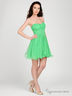Детали: двухслойное платье; отрезной лиф с оригинальной драпировкой; верхняя часть лифа усилена силиконовой лентой; чашки с поролоновым уплотнителем; широкая расклешенная юбка