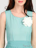 Детали: круглый вырез; отрезной лиф; юбка-плиссе; застегивается на молнию сбоку; в шлевки продет пояс; низ изделия дополнен контрастной оборкой; оригинальный принт; съемная брошь - цветок