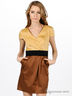 Детали: V-образный вырез с запахом, пришит контрастный пояс в сборку, два передних кармана, скрытая застежка на молнию на спинке