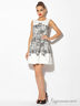 Стильное платье с округлым вырезом горловины и короткими рукавами. Модель с расклешенной юбкой декорирована ярким рисунком. Прекрасный вариант на каждый день.