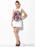 Прекрасное платье с округлым вырезом горловины и короткими рукавами. Модель оформлена контрастным рисунком.