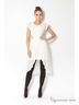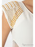 Эффектное платье приталенного покроя с короткими рукавами и округлым вырезом горловины. Изделие имеет удлиненный покрой сзади и дополнено вставками из прозрачного материала по бокам. На плечах присутствуют декоративные элементы. Отличный вариант для создания запоминающегося образа.