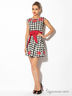 Прекрасный вариант на лето. Платье с короткими рукавами и округлым вырезом горловины. модель оформлена контрастным рисунком и декорирована бантом на поясе.