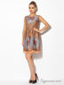 Яркое платье с короткими рукавами и округлым вырезом горловины. Модель оформлена оригинальным рисунком. Превосходный вариант на каждый день.