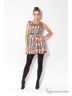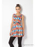 Замечательное платье без рукавов с округлым вырезом горловины. Модель выполнена из принтованной ткани контрастной расцветки. Изделие дополнено поясом на талии. Отличный вариант на каждый день.