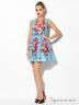 Модное платье с округлым вырезом горловины и короткими рукавами. Изделие декорировано ярким рисунком.