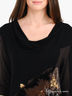 Легкое и практичное платье приталенного силуэта из тонкого, эластичного трикотажа. Ворот с напуском, длинный прямой рукав. Полочка декорирована бархатистым напылением в виде роскошного цветка. Великолепный повседневный наряд!